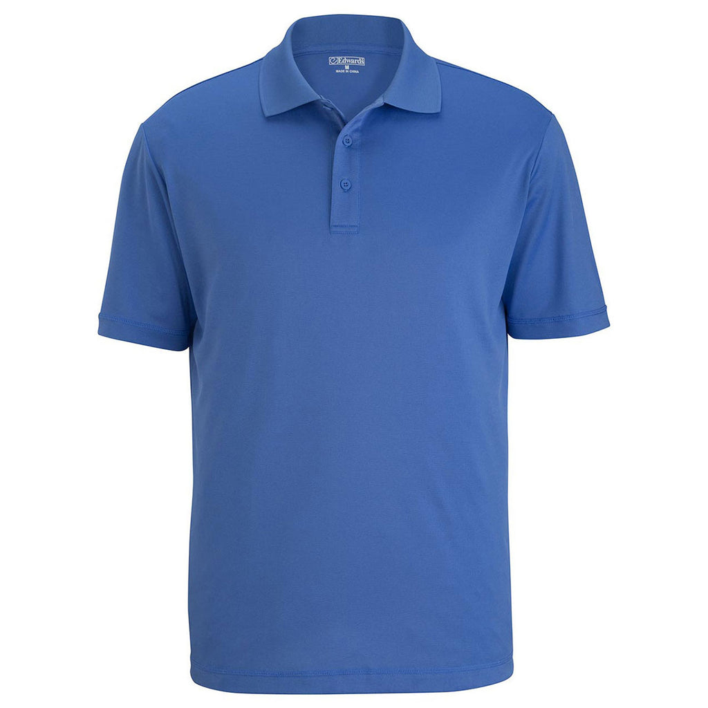 Your company logo will get noticed on the Edwards Men's French Blue Mini-Pique Snag-Proof Polo when used as employee apparel. This short sleeve polo is comfortable year-round whether worn alone or layered with other company gear. Made of 100% polyester mini-pique in a lightweight design, the polo is moisture wicking and machine washable with straight hemmed bottom and sleeves. Consider a custom logo to create a fun option for a cause or to show team support with a polo that is fashionable, yet functional.Highlights