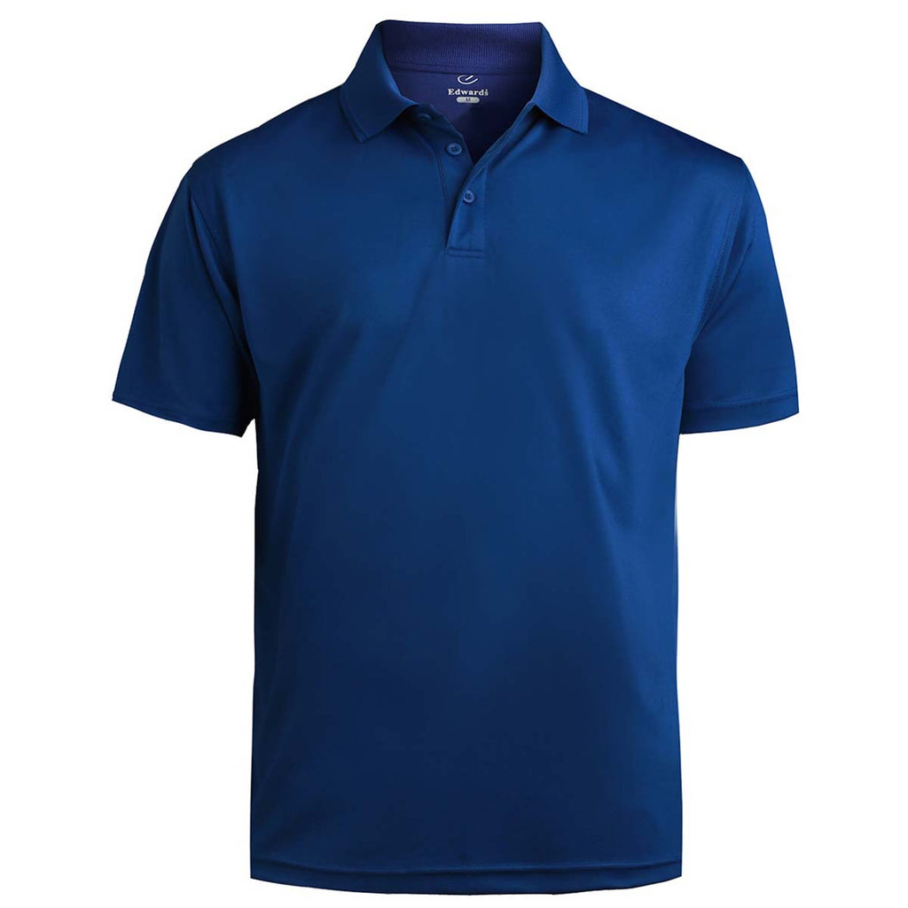 Create all day comfort with a custom Edwards Men's Royal Performance Flat-Knit Short Sleeve Polo. Made of 100% polyester, the smooth, lightweight performance knit wicks moisture and offers an antimicrobial fabric shield with back neck sweat patch. Add a corporate embroidery to use these as highly wearable employee apparel. An excellent choice for those who need hospitality apparel for employees who need to look their best when interacting with guests and customers, these polos will carry your company logo very well. Place an order for the shrink, wrinkle, fade, and snag resistant polos that will stand the test of time.Highlights