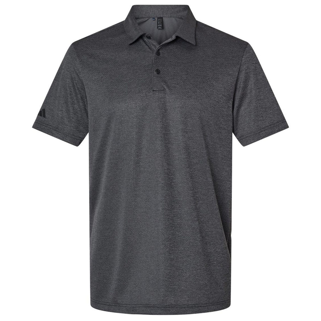 Adidas Men's Black Melange Space Dyed Polo with a corporate logo is a fashion-forward way to showcase your company or brand. Whether playing in a golf tournament, working out of the office, or showcasing products at a trade show, this is a true must-have. The contrasting Adidas logo is on the right sleeve.This product cannot ship outside of the United States