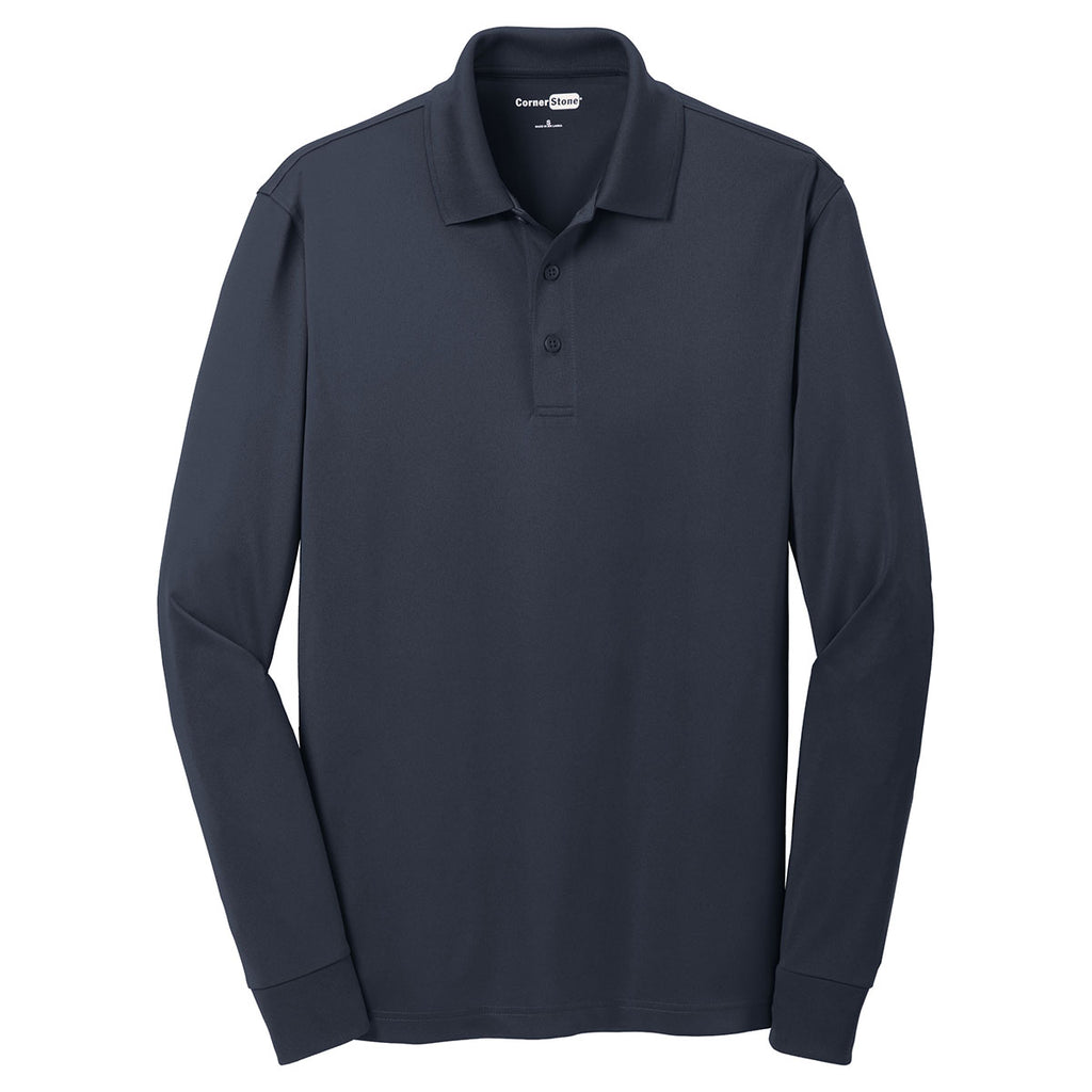 Does working hard mean you have to look less than your best? CornerStone believes the answer is no, as evident by the CornerStone Men's Dark Navy Select Snag-Proof Long Sleeve Polo. Designed with 100% polyester, this workwear puts a new spin on the term "stylish work attire." Double needle stitching throughout the entire shirt prevents the types of rips that occur whenever you snag the shirt on a nail or other type of protruding object. The highly durable construction shirt withstands prolonged exposure to odors and moisture to ensure you maintain a professional appearance no matter where you work. Highly breathable materials in the flat knit collar keep your neck and shoulders cool during sweltering summer days.Highlights