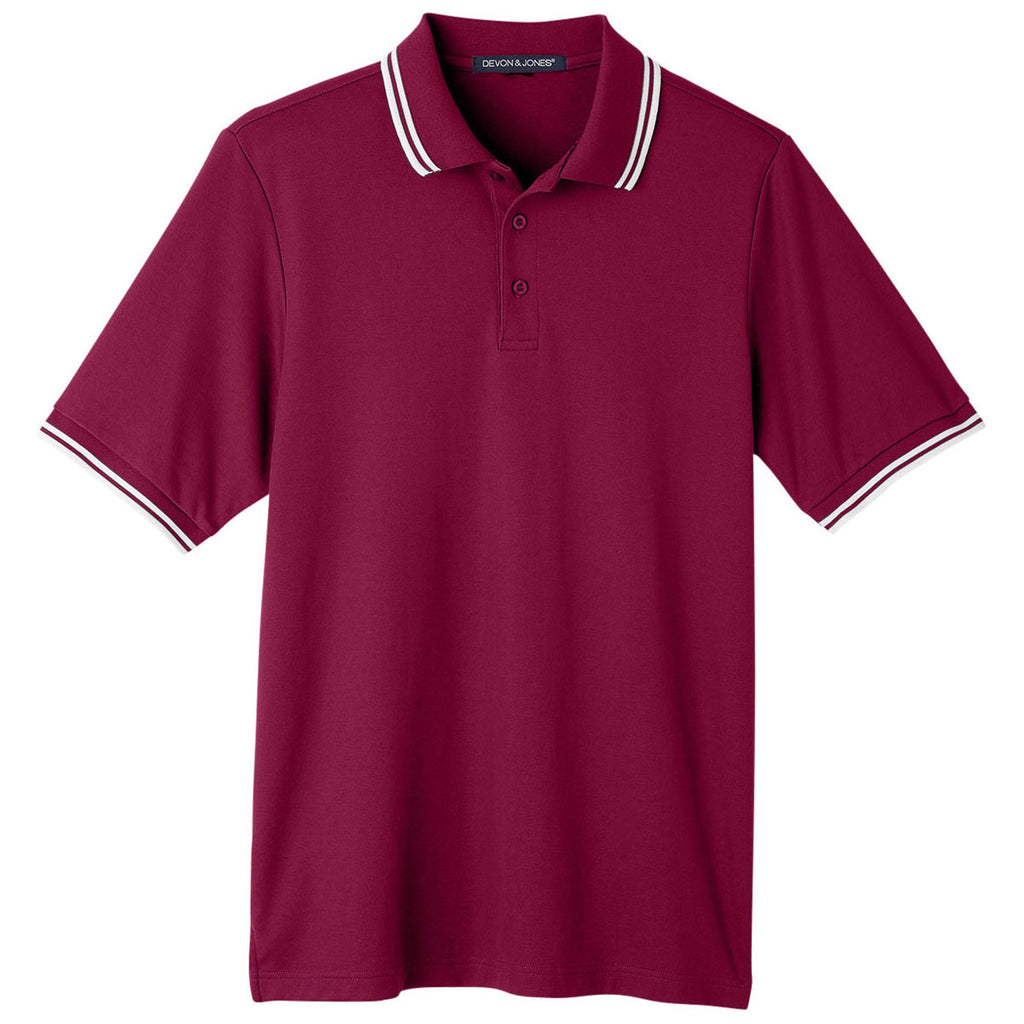 Devon & Jones Men's Burgundy/White CrownLux Performance Plaited Tipped Polo