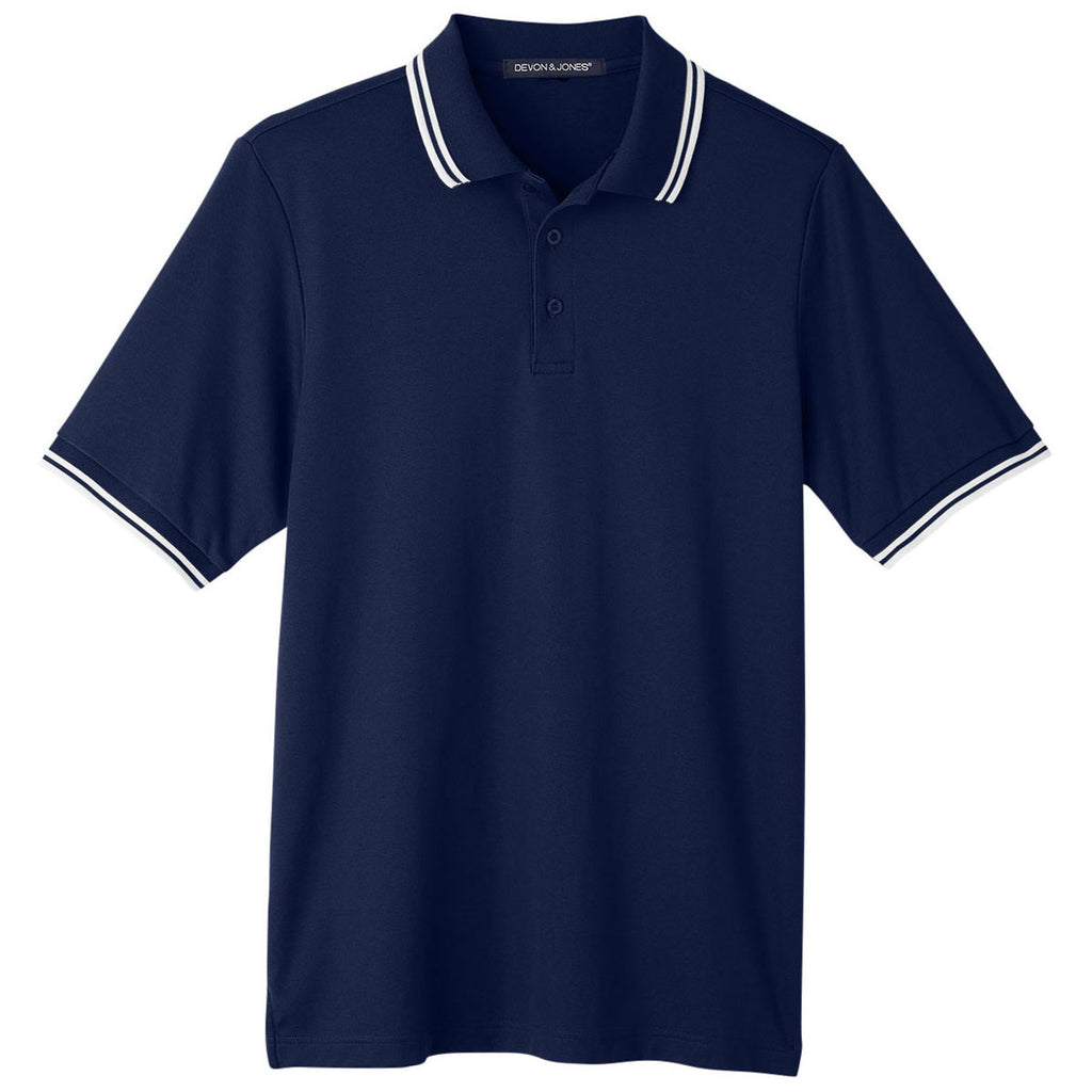 Devon & Jones Men's Navy/White CrownLux Performance Plaited Tipped Polo