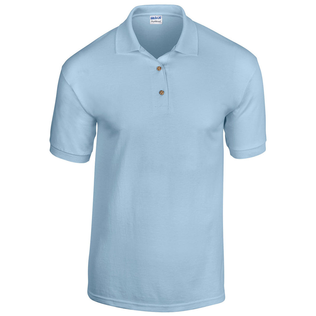 Gildan Men's Light Blue 6 oz. 50/50 Jersey Polo will show off your custom logo with pride. The lightweight cotton and polyester blend polo is great for the office or when hitting the links. The moisture-wicking properties keep you dry whether presenting for a meeting or playing the best round of your life. Place an order today.Highlights