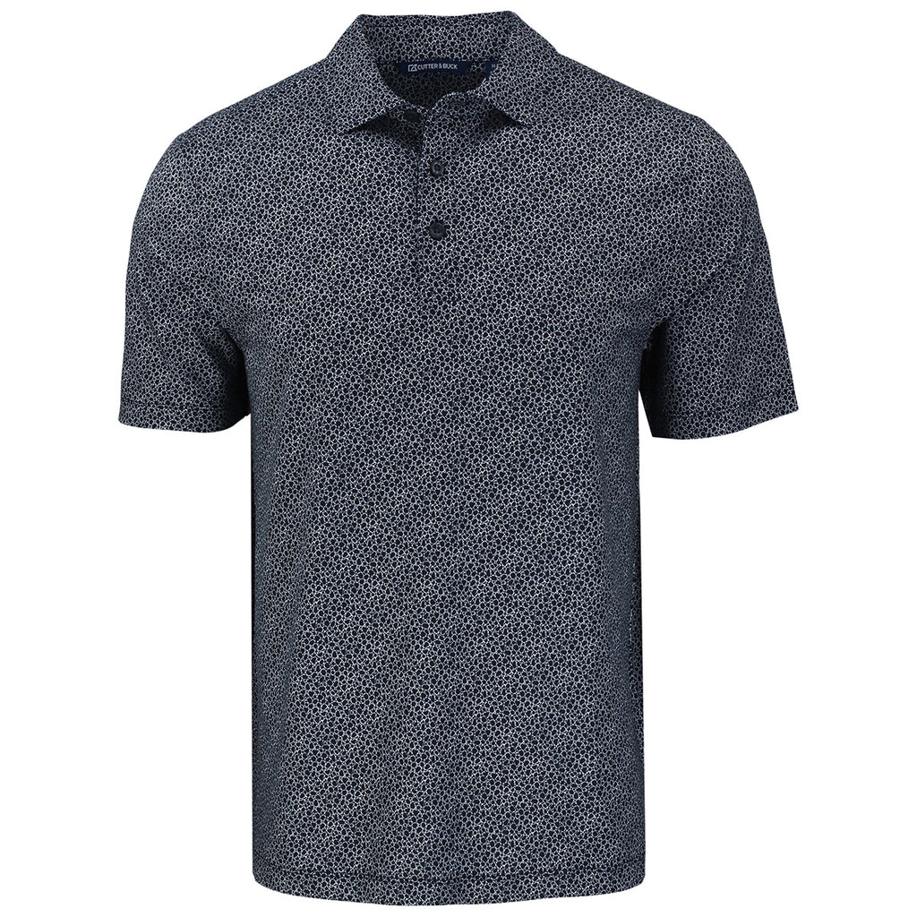 Cutter & Buck Men's Black/White Pike Eco Pebble Print Stretch Recycled Polo