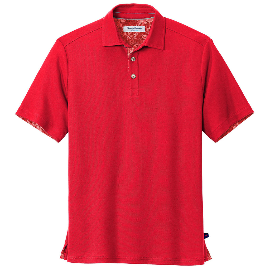 The Tommy Bahama Men's Poinsettia Red 5 O'Clock Polo is made from a luxuriously soft fabric that will keep you comfortable on the course, the beach, or at after-hours drinks. Add your company's custom logo or design to this pique fabric polo to create a professional look that will take your team absolutely anywhere.