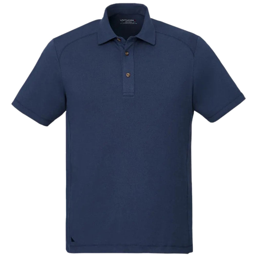 Add a corporate logo to the UNTUCKit Men's Navy Performance Polo for an in and out of office look that is fun and fashion forward. Designed to be worn hem-out, your custom embroidery will only add to this overall look. The relaxed fit with a structured collar maintains its shape through repeated wear. Place an order today.Highlights