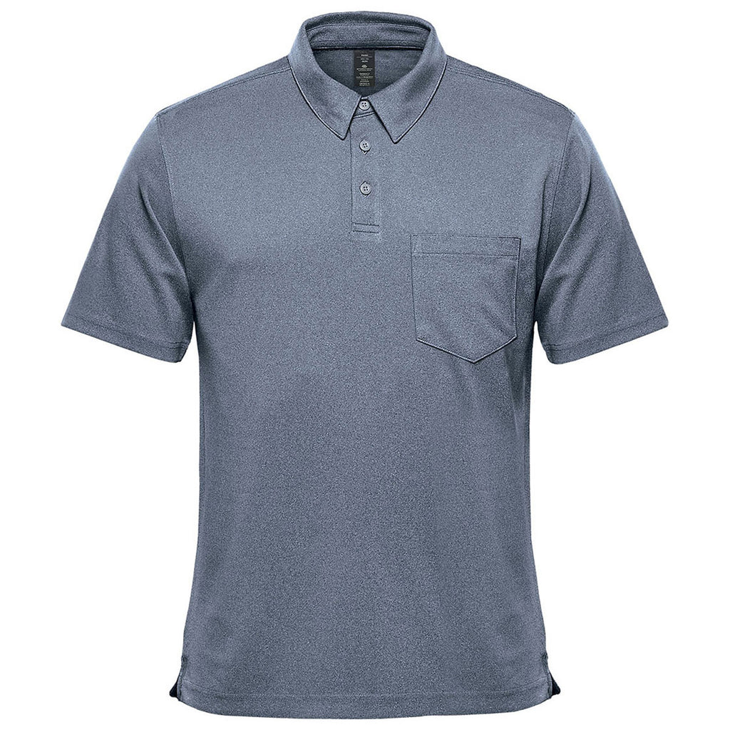Stormtech Men's Navy Heather Dockyard Performance Short Sleeve Polo with custom embroidery is the business casual polo that everyone can enjoy. This durable 100% polyester double pique knit fabric is treated with odor control technology and moisture management for optimal body comfort. Add a company logo to use as uniforms or add something custom to add to your logoed apparel line. The sleek look paired with a UPF rating of 50+ means this is great for that round of golf business meeting or lunch out with clients and friends. Place an order today to make sure you do not miss out on this deal.Highlights