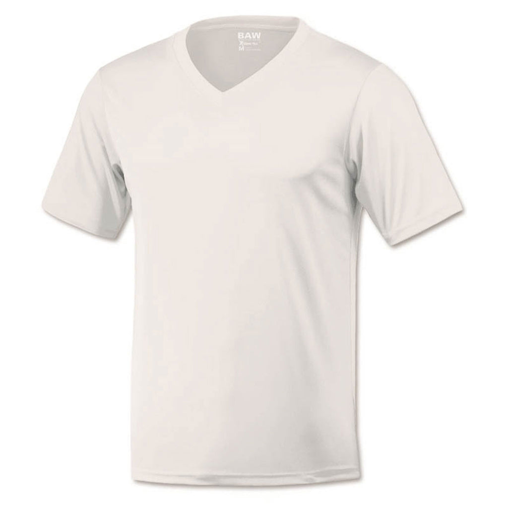 Does a man ever have enough V-neck short sleeved shirts? When you hand out the BAW Men's White Xtreme Tek V-Neck Short Sleeve Shirt with your custom logo on it, it will be a welcomed gift. It is ideal to give to contest winners, gift with purchase, or to give to a new prospective customer. Whenever he wears it, he will definitely think about your company. It is made of polyester Xtreme-Tek and the fabric has moisture wicking properties. This makes the shirt feel great against the skin and keeps the wearer cool and dry. This shirt also offers UV protection and has an anti-bacterial treatment.Highlights