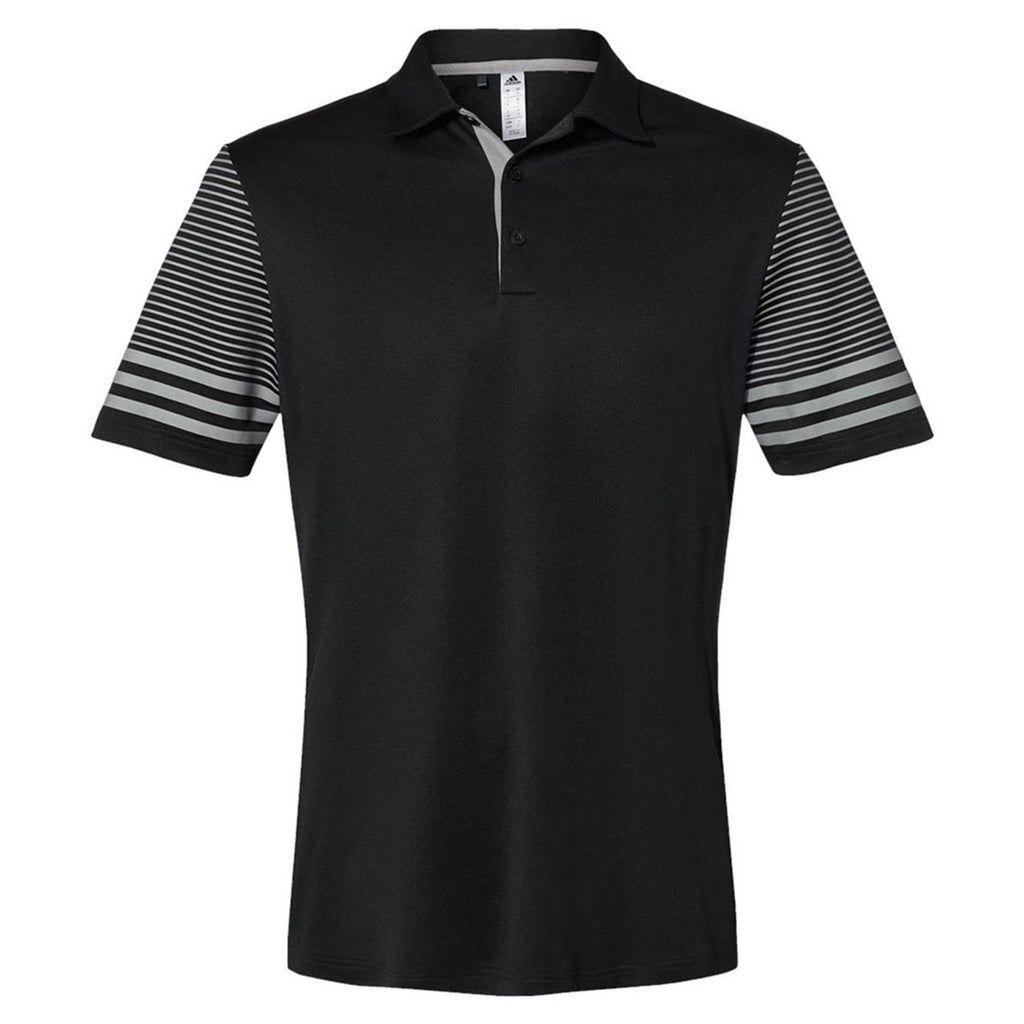 adidas Men's Black/Grey Three Striped Sleeve Sport Shirt