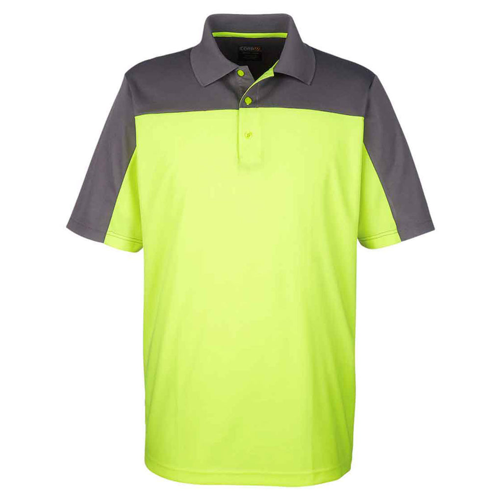 Core 365 Men's Safety Yellow/Carbon Balance Colorblock Performance Pique Polo