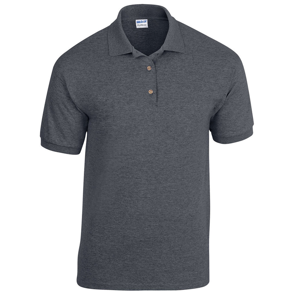 Gildan Men's Dark Heather 6 oz. 50/50 Jersey Polo will show off your custom logo with pride. The lightweight cotton and polyester blend polo is great for the office or when hitting the links. The moisture-wicking properties keep you dry whether presenting for a meeting or playing the best round of your life. Place an order today.Highlights