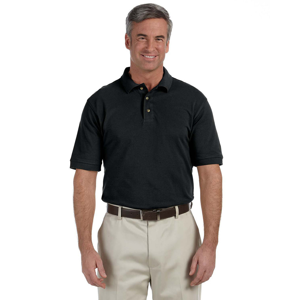You turn to Harrington for ordering logoed corporate gifts for your loyal customers. Harriton Men's Black Tall 6 oz. Ringspun Cotton Pique Short-Sleeve Polo allow you to purchase high-quality corporate apparel that comfortably fit the tallest members of your team. One-hundred percent ringspun cotton pique handles the toughest home improvement projects you perform, while giving you a sleek shirt to wear for attending corporate events. Side seamed for additional fabric strength, the polo comes with horn-style buttons and a three-button placket to dazzle your professional peers. Add your company logo and watch awareness of your brand soar.Highlights