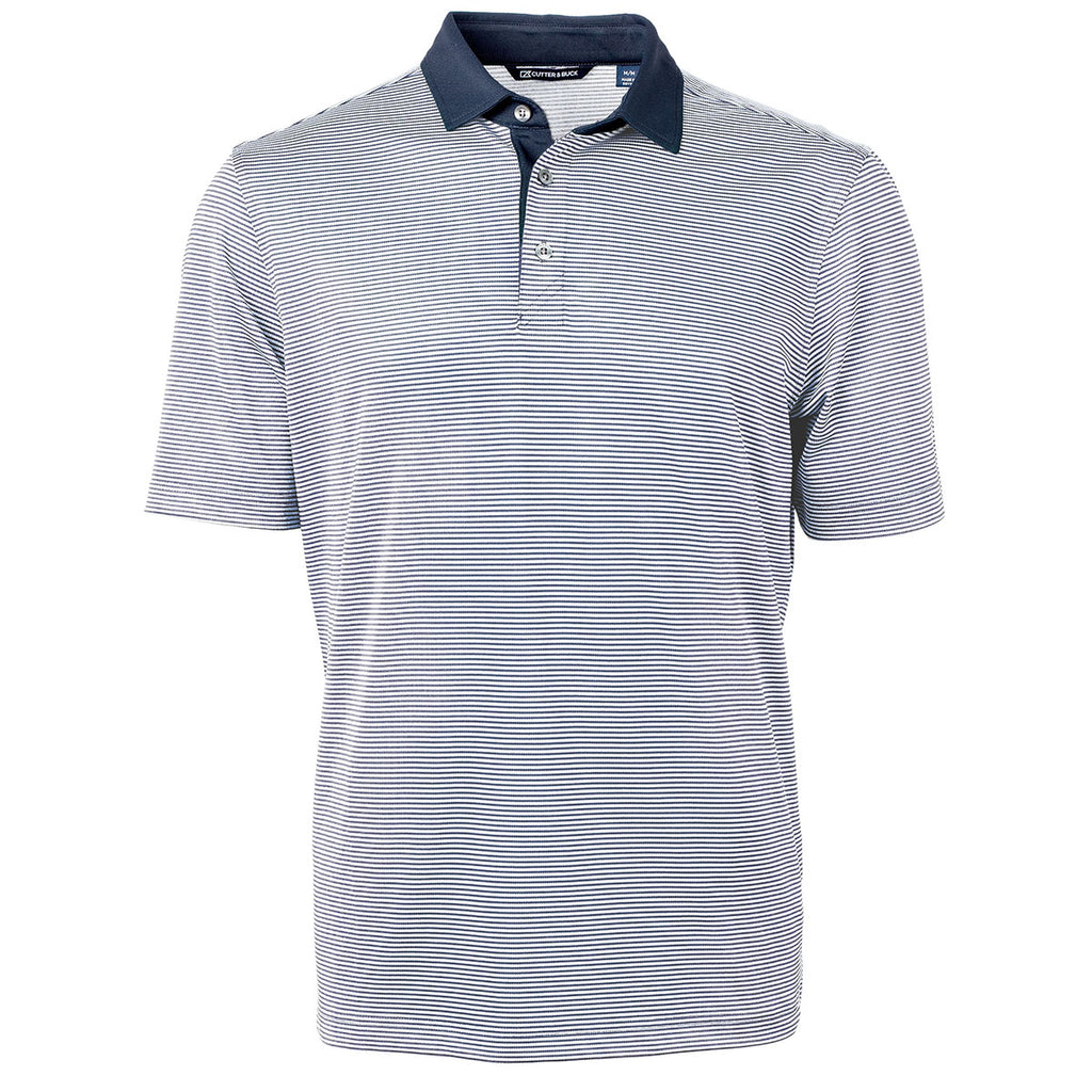 Cutter & Buck Men's Navy Blue/White Virtue Eco Pique Micro Stripe Recycled Tall Polo