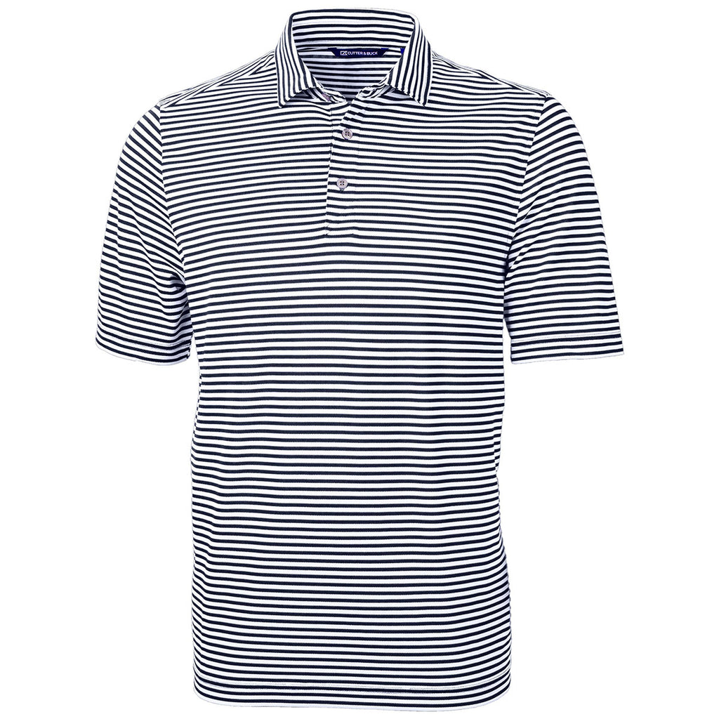 Corresponding Men's Style: Cutter & Buck Men's Navy Blue Virtue Eco Pique Stripped Recycled Polo