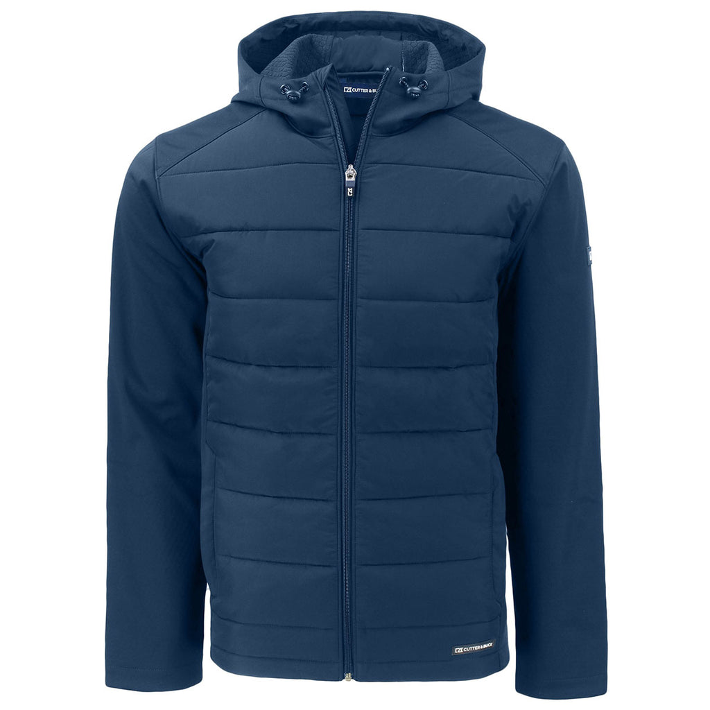 Cutter & Buck Men's Navy Blue Evoke Hybrid Eco Softshell Recycled Full Zip Hooded Jacket with a custom logo is the perfect way to stay warm when the weather turns cold. The quilted jacket with fleece interior is water resistant, making it perfect for camping, hiking, biking, and other outdoor adventures. Place an order today.Corresponding Women's Style: Cutter & Buck Women's Navy Blue Evoke Hybrid Eco Softshell Recycled Full Zip Hooded Jacket