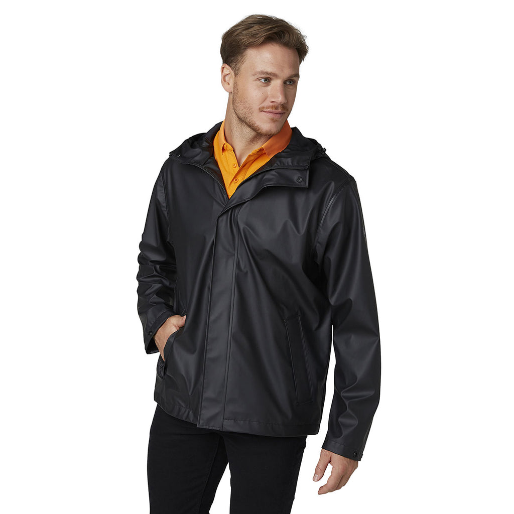 Rain? What rain? Be ready to fulfil commitments no matter the conditions with Helly Hansen Men's Black Moss Jacket featuring embroidery of your company name, logo, and employee names. Help your crew tackle even the densest of downpours and stay dry and safe with this classic rain jacket so they can focus on the task at hand and deliver their best. This trusty rain jacket is built with Helox+ technology to withstand any amount of downpour and wind. Other highlights include waterproof PU fabric construction, welded seams, quick-dry interior and hand pockets. A trusty shield against both the damp and the cold, the rainproof jacket is perfect for team uniforms or corporate promotion on outdoor events like biking, fishing, camping etc.