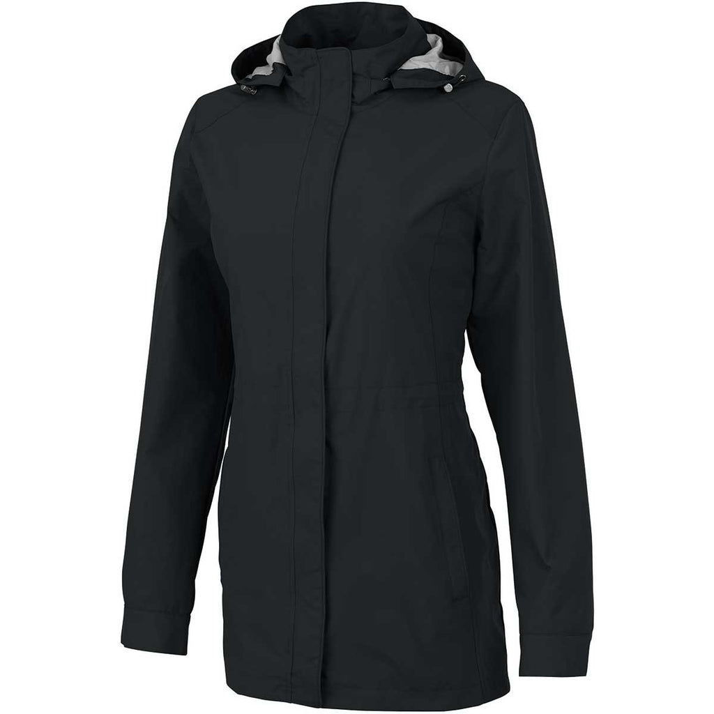You want full protection from the elements when you go outside so you never feel caught in the rain. But you don't want to look like you're completely out of your element, either. What's the right solution? This Charles River Women's Black Logan Jacket, which delivers both style points and weather resistance. The 100% nylon construction is surprisingly durable even in the elements, while the interior drawstring allows you to cinch the fit for a stylish silhouette. You can even add a hood or keep it zipped off if you don't think it's going to rain. Add your custom logo to complete this picture and you'll be ready for anything.Corresponding Men's Style: Charles River Men's Black Logan Jacket