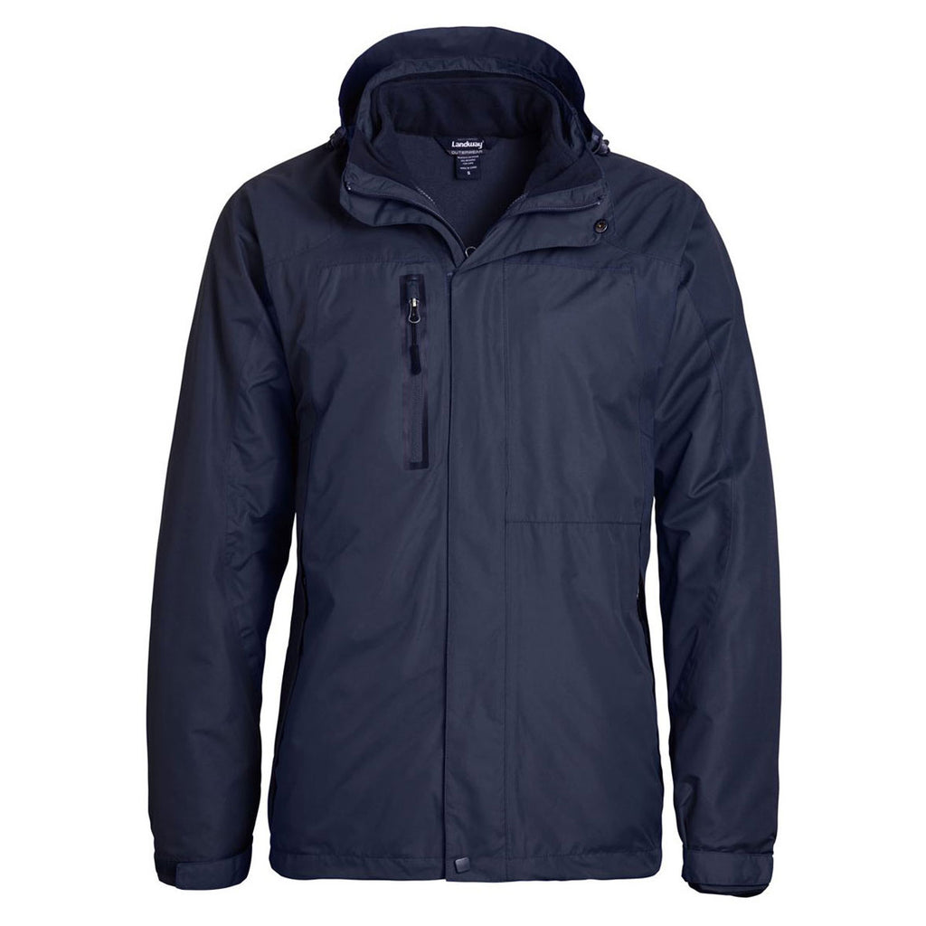 The timing is right to order the company logoed Landway Men's Navy Pathfinder 3-in-1 Parka. The colder months of the year call for a warm and durable jacket like the one you see here from Landway. One-hundred percent polyester resists rips and tears that cause you to replace the jacket in one years time. A coating of water repellent quickly evaporates rain and snow to ensure long lasting comfort. Polyester microfleece lining offers an additional insulation layer that traps body heat. The classic parka fit does not include the classic parka bulk. Attach your corporate logo to shine a light on your superior products and services, and outfit your team all at the same time.Corresponding Women's Style: Landway Women's Navy Pathfinder 3-in-1 Parka