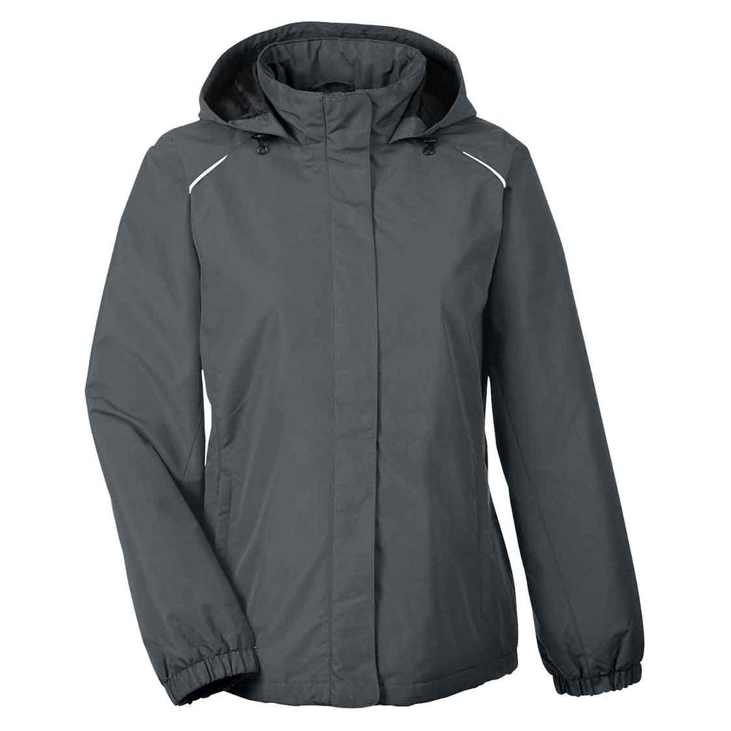 If you live in an area of the United States that experiences all four seasons, you need a versatile jacket that handles every weather condition thrown at it by Mother Nature. The Core 365 Women's Carbon Profile Fleece-Lined All-Season Jacket possesses a water resistant finish that keeps you dry. Polyfill insulation in the sleeve protects your from the harshest weather handed out by Old Man Winter. The roll away hood and storm flap with concealed snaps keep your head warm on blustery autumn days. Lower hidden pockets store all of your electronic devices. Add your company logo and watch awareness of your brand skyrockets.Corresponding Men's Style: Core 365 Men's Carbon Profile Fleece-Lined All-Season Jacket
