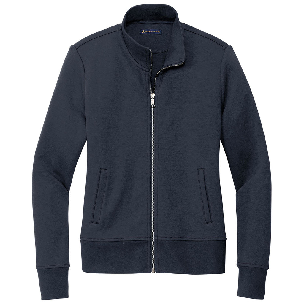 Create a style with a custom Brooks Brothers Women's Night Navy Double-Knit Full Zip. Add embroidery to the sleek classic full front-zip jacket. The slightly cropped length makes this jacket perfect for both inside out outside of the office. Reach out to place an order and outfit the entire team with a high-quality uniform.