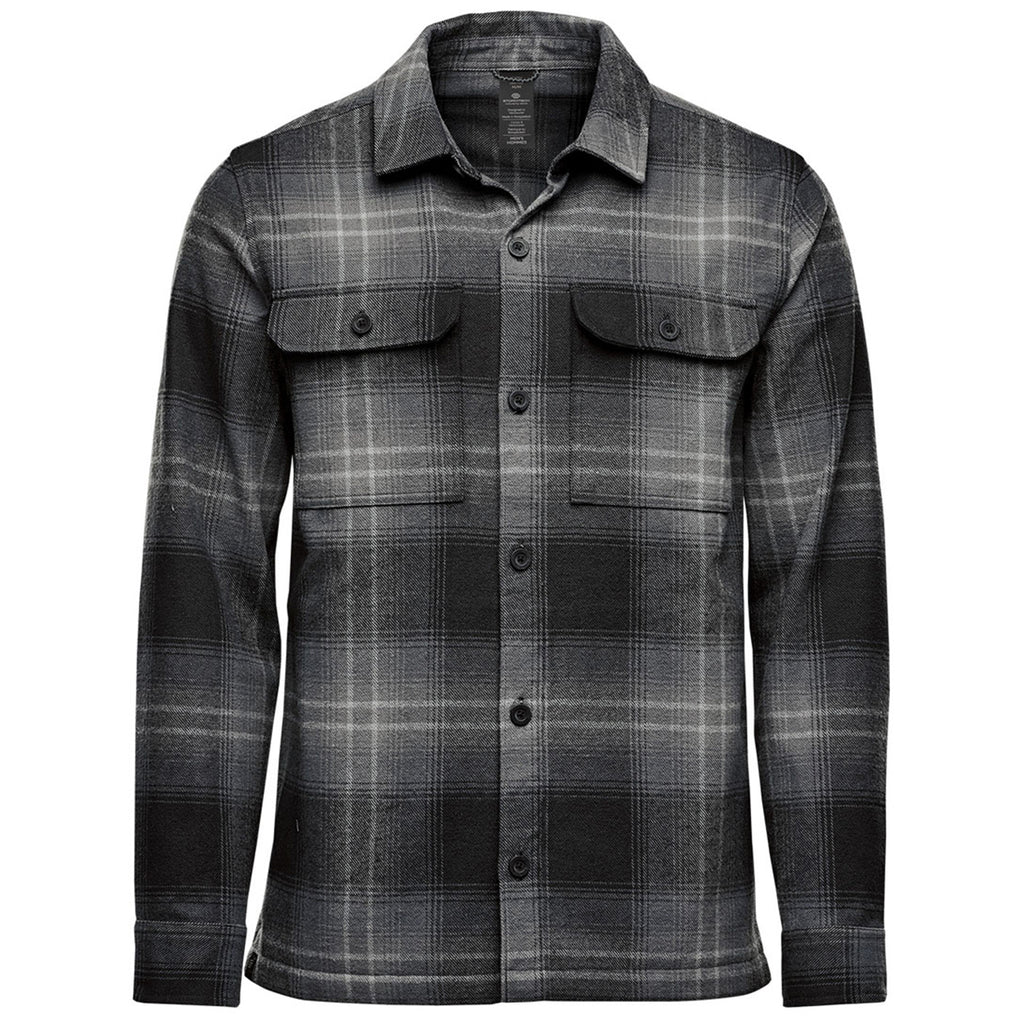 Choose a corporate logo for the Stormtech Men's Carbon/Black Highland Plaid Shacket for a refreshing take on a traditional outdoor plaid shirt. The durable shacket has heavy-duty center front buttons for easy layering over your favorite shirt or tee. Ideal for those who work outdoors or enjoy spending time outside, this is a versatile option for both.Corresponding Women's Style: Stormtech Women's Carbon/Black Highland Plaid Shacket