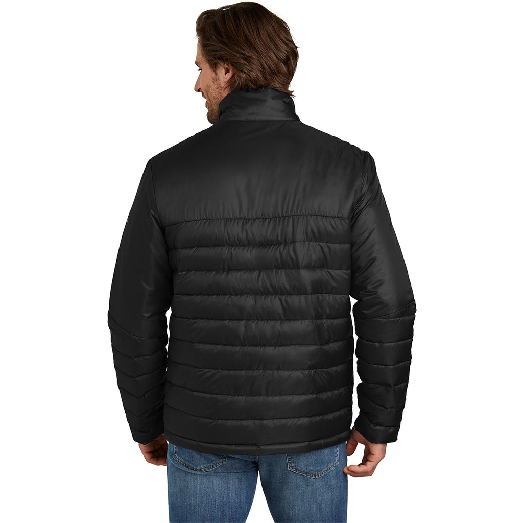 Eddie Bauer Men's Deep Black Quilted Jacket with a custom logo is ideal for those who work or play in the Great Outdoors. The quilted jacket is warm without being bulky and maximized to keep you warm while building snowmen, hitting a black diamond slope, or watching an outdoor game with friends. Place an order today.This product can only ship within the United States, Puerto Rico, Canada, and Mexico.