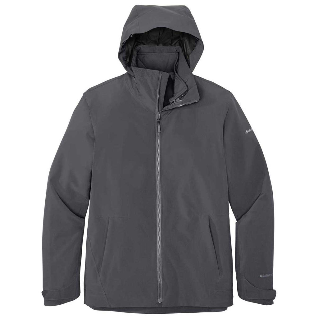 Adapt to life with a custom embroidery Eddie Bauer Men's Grey Steel/Metal Grey WeatherEdge 3-in-1 Jacket. Engineered to adapt to weather conditions of all types, this 3-in-1 system is seam sealed throughout to be waterproof, yet breathable. An inner soft shell provides warmth and water repellant technology keep you dry. This jacket is ready for the slopes, but can be-Zipped apart and worn as pieces. Add a company logo to the jacket to give as employee gifts that can be enjoyed year round. An adjustable hood with locking drawcord, adjustable cuffs, and-Zippered pockets create a purposeful jacket that looks great.