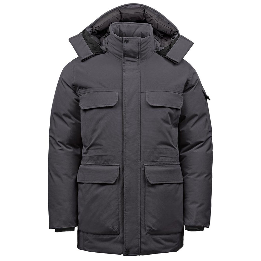 Stormtech Men's Granite/Black Denali Parka with a custom logo offers extreme comfort in the extreme cold. Delivering protection from the elements whether trekking through the woods or commuting to work, this parka is ready to face the day. Multiple pockets, a hood, and a storm flap make this a must-have. Place your order today.Corresponding Women's Style: Stormtech Women's Granite/Black Denali Parka