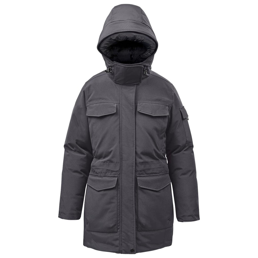 Add a custom logo to the Stormtech Women's Granite/Black Denali Parka to face the extremes of weather in high fashion. The Arctic Explorer design is ready for outdoor adventure, but can easily keep you toasty on your morning commute. The addition of multiple pockets, a hood, and a storm flap means you can hit the slopes or work outdoors with ease.Corresponding Men's Style: Stormtech Men's Granite/Black Denali Parka