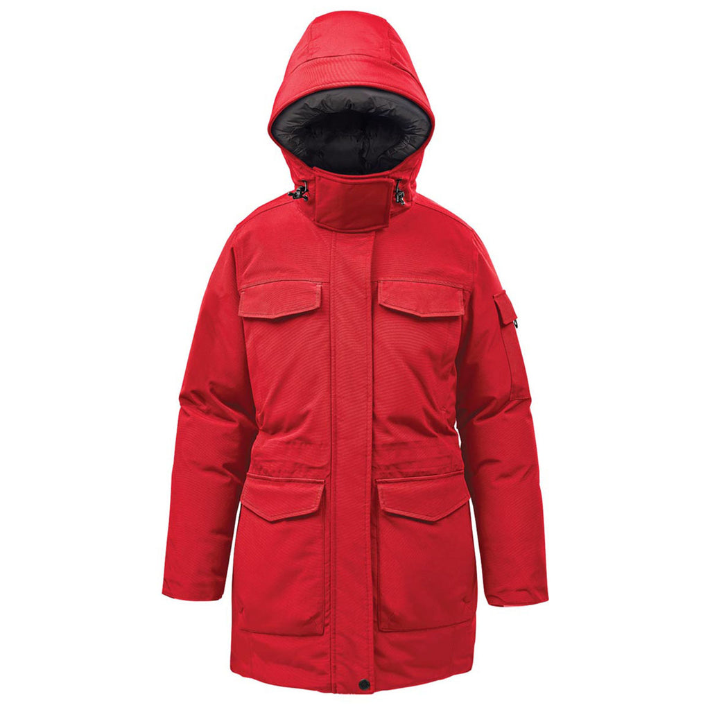 Add a custom logo to the Stormtech Women's Red/Black Denali Parka to face the extremes of weather in high fashion. The Arctic Explorer design is ready for outdoor adventure, but can easily keep you toasty on your morning commute. The addition of multiple pockets, a hood, and a storm flap means you can hit the slopes or work outdoors with ease.Corresponding Men's Style: Stormtech Men's Red/Black Denali Parka