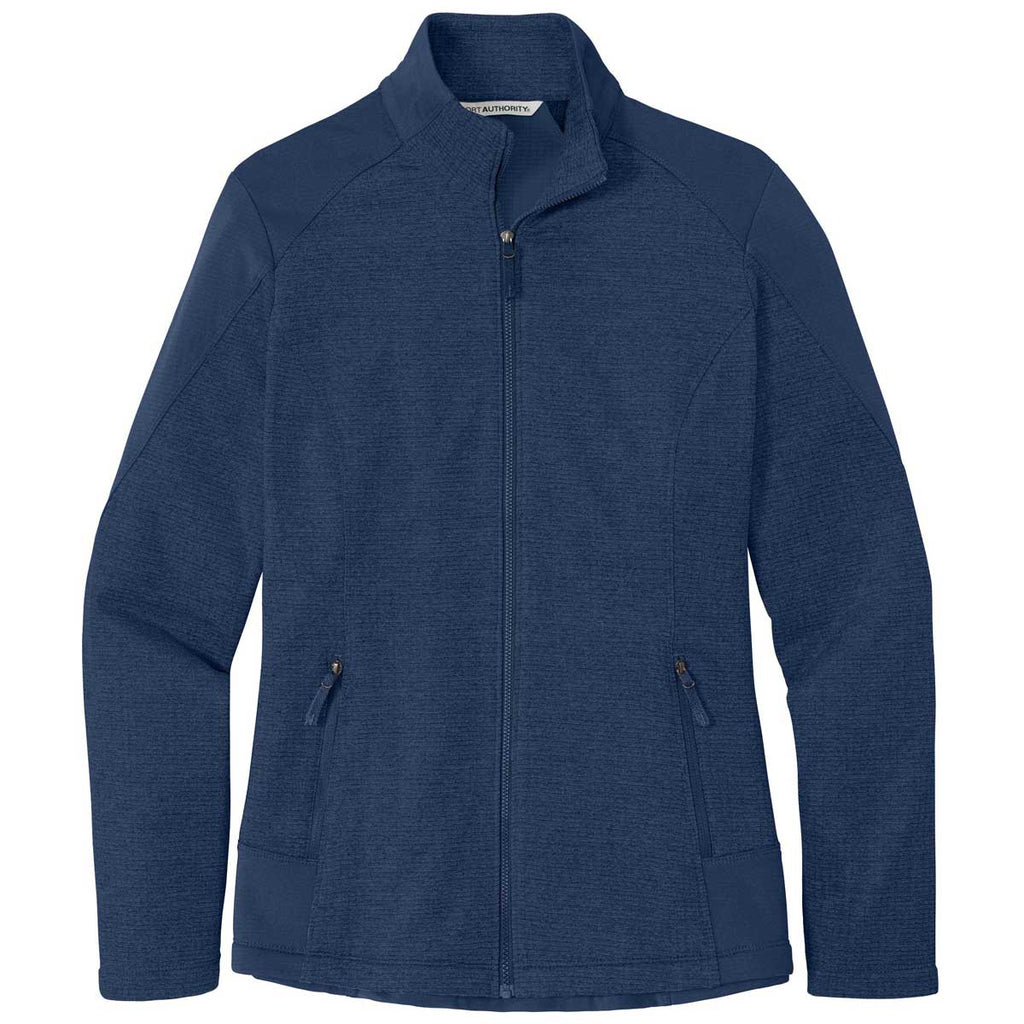 Enjoy a sleek custom look with the Port Authority Women's River Blue Navy Grid Fleece Jacket. This must have jacket made of a polyester and spandex fleece blend can serve as a warm outer or mid layer with plenty of stretch for all day comfort. Add a company logo to use as employee apparel for those who work outdoors or a custom logo to use as team gear for those involved in sports. Perfect to warm-up or stay warm between events, this jacket is easy to wear, easy to layer, and will update nearly any wardrobe.Corresponding Men's Style: Port Authority Men's River Blue Navy Grid Fleece Jacket