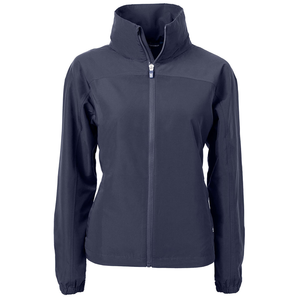 Cutter & Buck Women's Navy Blue Charter Eco Recycled Full Zip Jacket showcasing your custom logo will get you recognized at work or while out having fun. The full-front zip jacket is made of recycled materials with a water-resistant finish, a stowable hood, and an adjustable drawcord at the hem for an ideal fit. Great for outdoor adventures like camping, hiking, and backpacking. Order yours today.Corresponding Men's Style: Cutter & Buck Men's Navy Blue Charter Eco Recycled Full Zip Jacket