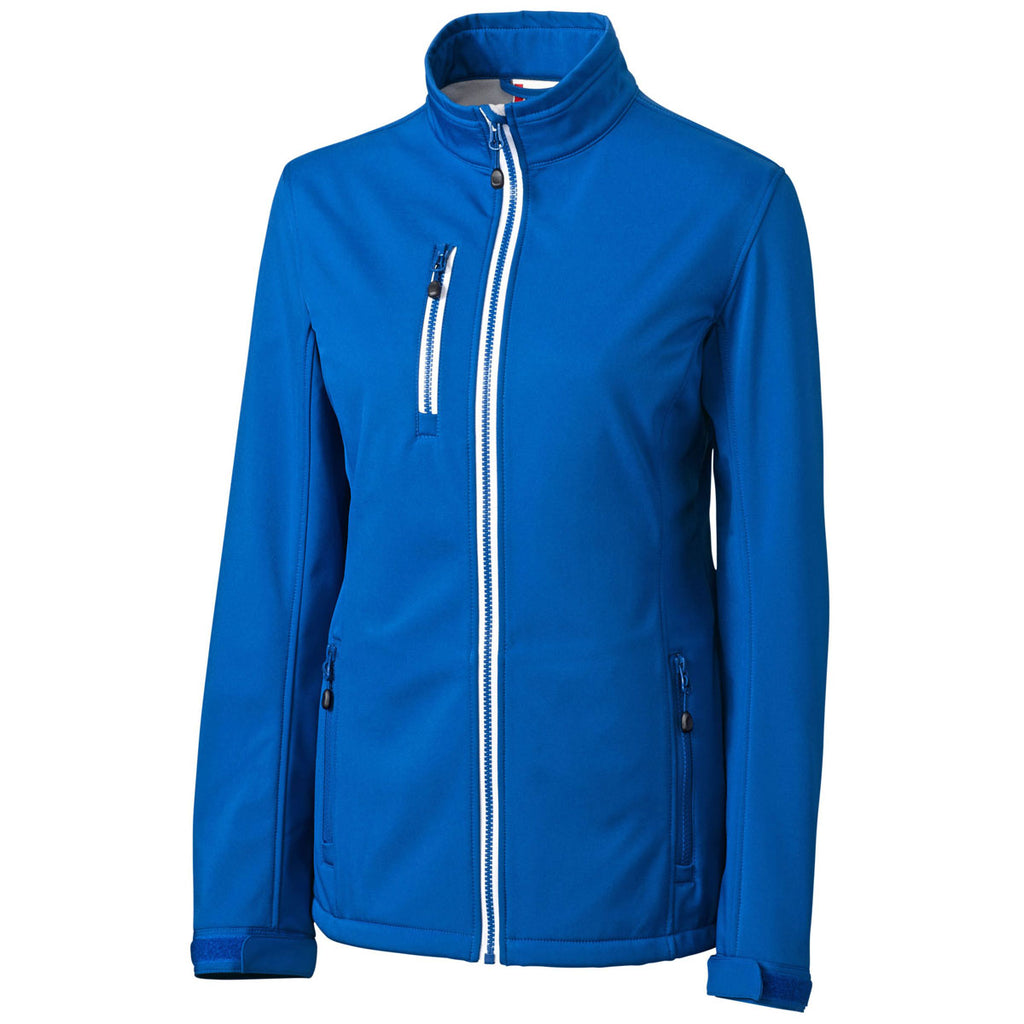 Raise the fashion bar for company apparel by ordering the Clique Women's Royal Blue Telemark Softshell for the members of your hard working team. The ultimate jacket for employees working in the field includes a mock neck and Velcro closure cuffs that produce a unique style befitting your dedicated staff. The 96% polyester softshell jacket contains a bit of spandex to increase your mobility. Rugged polyester resists the types of rips and tears that end the fashion usefulness of other active wear jackets. Add your corporate on the large embroidery area to gain more loyal customers.Corresponding Men's Style: Clique Men's Royal Blue Telemark Softshell