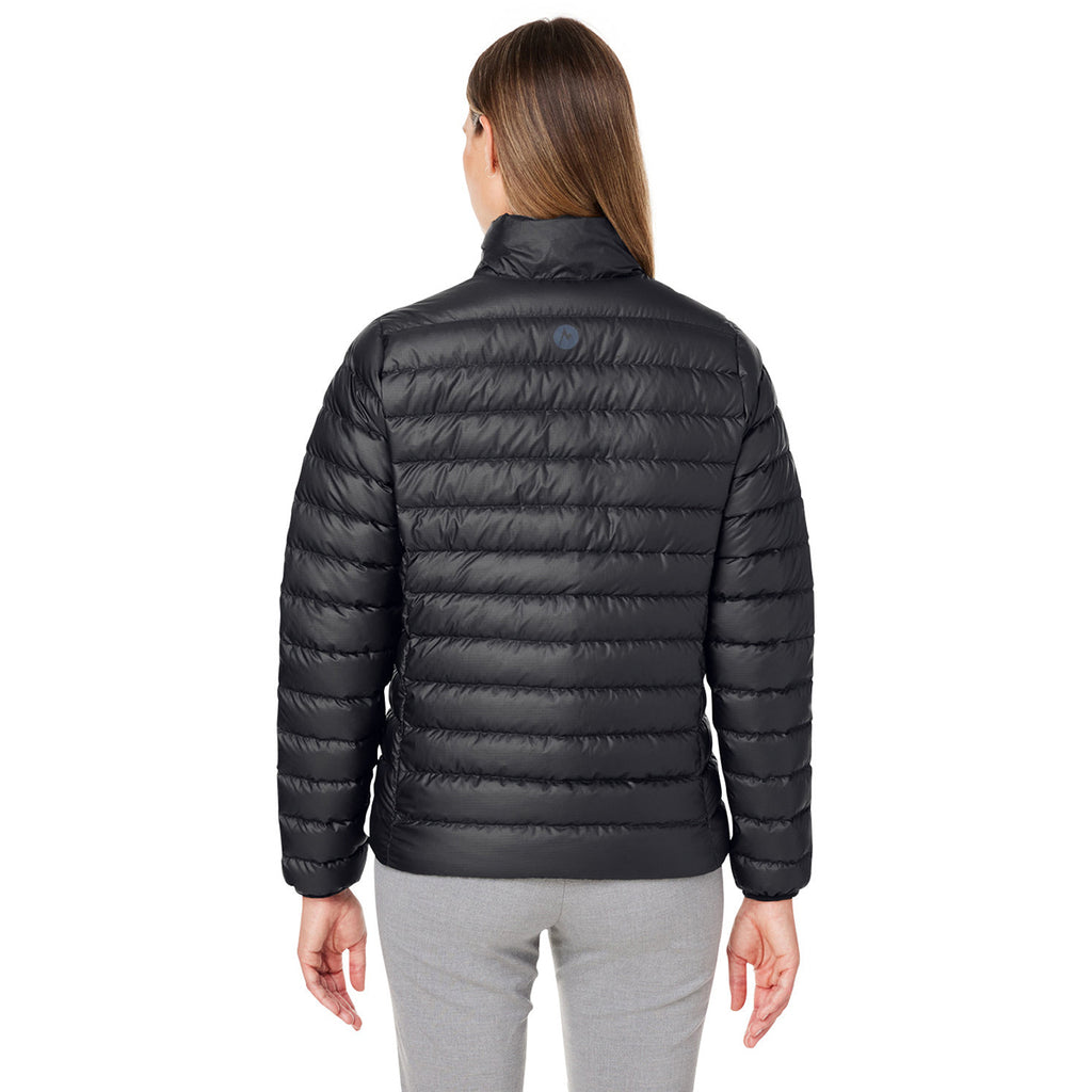 Marmot Women's Black Highlander Down Jacket with custom embroidery is a fun option for cold weather wear. The quilted look of the full zip jacket leaves you looking cold weather ready and the lightweight warmth provided is great no matter what your day may hold. A zippered chest pocket and hand warmer pockets are great for small items. Place your order.