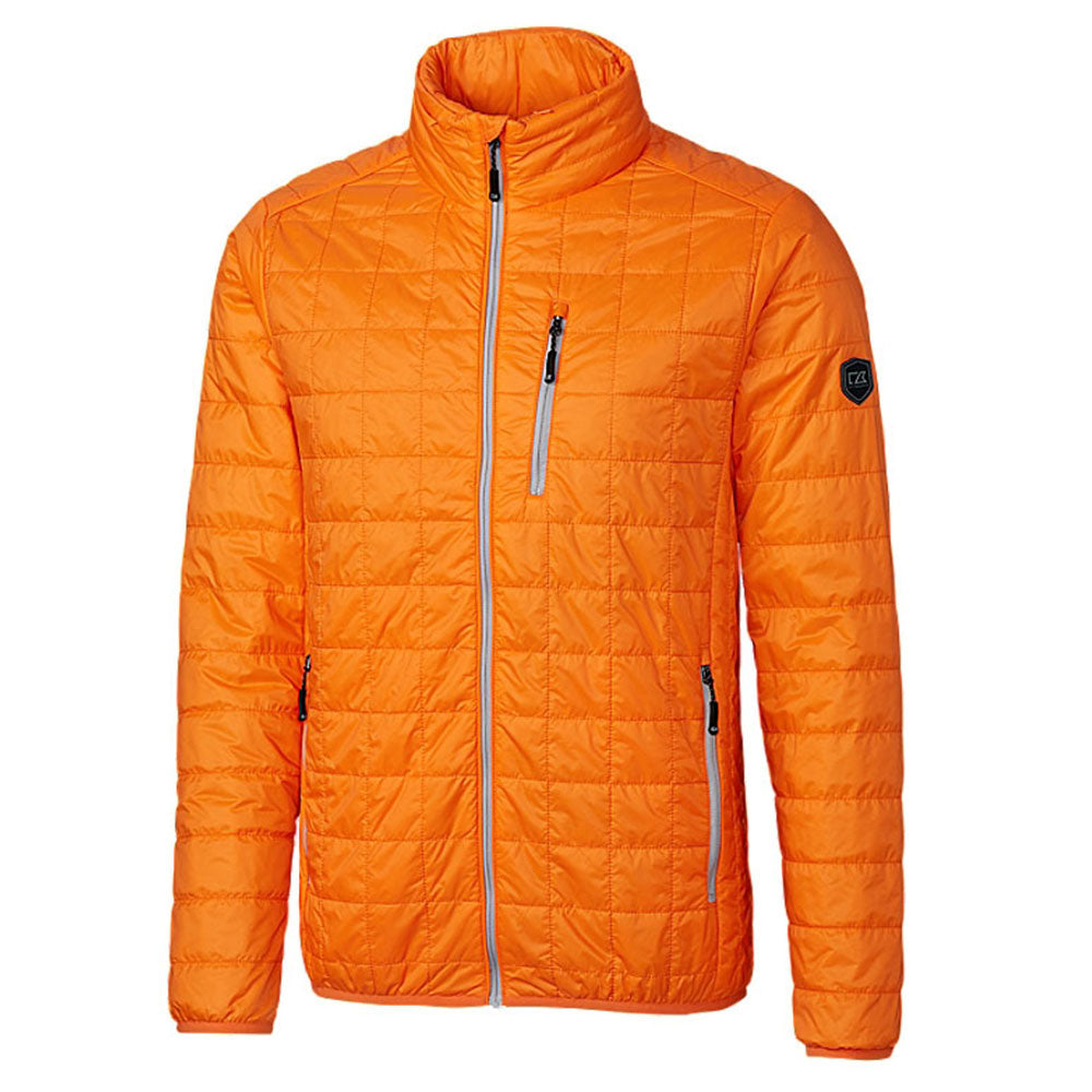 For a long sleeve jacket that is rated from zero to 50 degree, the Cutter & Buck Men's Satsuma Rainier Jacket is a great option, especially because your company's logo can be embroidered on it. It is insulted and made from easy-care taffeta. It has a mock turtle neck, full zipper front and front pockets with zippers. It is fully lined with a concealed hood and elastic bound cuffs. For your embroidered logo there is zip in lining for embroidery access. There is Primaloft fill that is packable into the left front pocket. This vest is machine washable in cold water on the delicate cycle.Corresponding Women's Style: Cutter & Buck Women's Satsuma Rainier Jacket