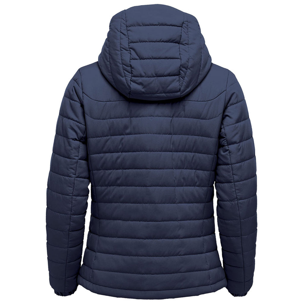 Stormtech Women's Navy Nautilus Quilted Hoody with embroidery creates a versatile look that is wonderful for most outdoor adventures. The outer layer keeps you dry with a waterproof finish, and the inner layer keeps you warm. Lightweight and easy to layer, this hoody is a must-have. Place an order right away.Corresponding Men's Style: Stormtech Men's Navy Nautilus Quilted Hoody