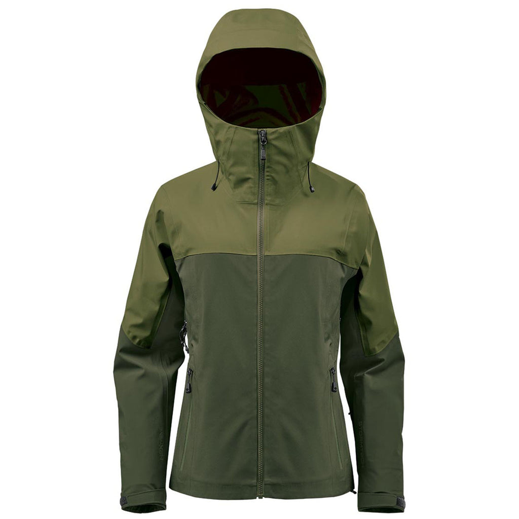 Add embroidery to the Stormtech Women's Chive/Cypress Vertex Stormshell to create a waterproof option ready for extreme weather. The 3-layer H2XTREME is breathable with an ergonomic fit and mechanical stretch making it great for outdoor adventure, skiing, or simply commuting to work each morning. Place an order today.Corresponding Men's Style: Stormtech Men's Chive/Cypress Vertex Stormshell