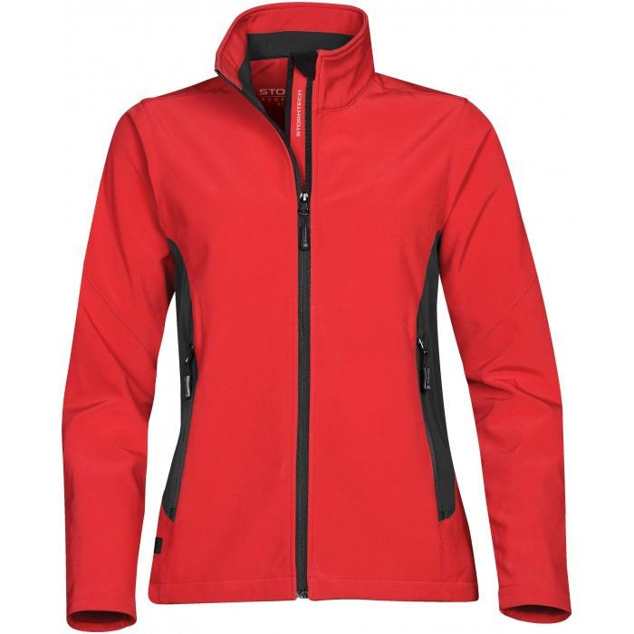 Ready to show off your brand in a durable way? Then this Stormtech Women's True Red/Black Pulse Softshell will make the perfect canvas for your unique logo. We say that because this softshell is comfortable enough to wear all the time-and strong enough to put up with it. That's a winning combination for any marketing strategy in your future.Corresponding Men's Style: Stormtech Men's True Red/Black Pulse Softshell