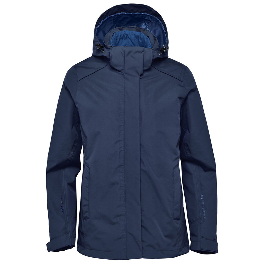 Stormtech Women's Navy Magellan System Jacket with a custom logo is the best way to enjoy the changing weather in style. The full zip system jacket with a removable hood has fully sealed seams and waterproof technologies to keep you protected and dry. Ideal for hunting, skiing, or the morning commute. Place an order today.Corresponding Men's Style: Stormtech Men's Navy Magellan System Jacket