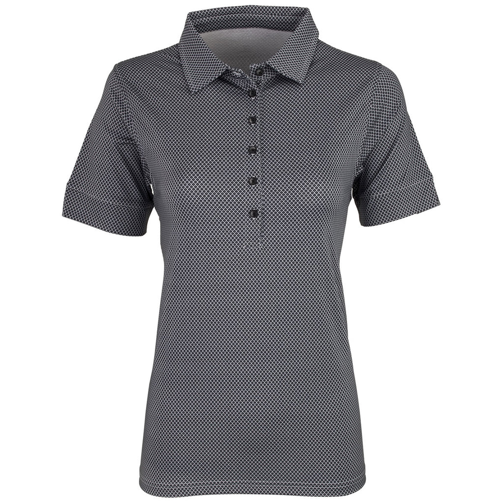 Design a custom embroidery for the Vansport Women's Black/Grey Pro Eagle Polo to create an easy-to-wear look that is ready for the day. The short sleeve polo is lightweight, anti-microbial, and offers UV protection with an all-over diamond print. Hit the putting green, the back nine, or work in this versatile polo.Corresponding Men's Style: Vansport Men's Black/Grey Pro Eagle Polo