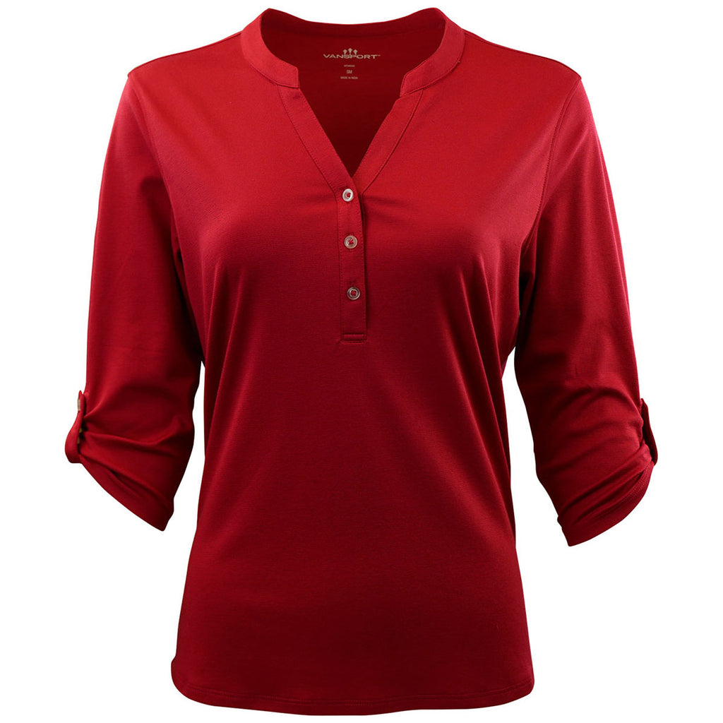 Keep things simple with a custom Vansport Women's Sport Red Victory Polo. This moisture-wicking and anti-static polo is fitted with 3/5 length sleeve and a roll-up sleeve tab to create a unique look. The curved hem bottom offers a little extra coverage, whether hitting the driving range or heading to the office. A perfect canvas for your company logo.Corresponding Men's Style: Vansport Men's Sport Red Victory Polo