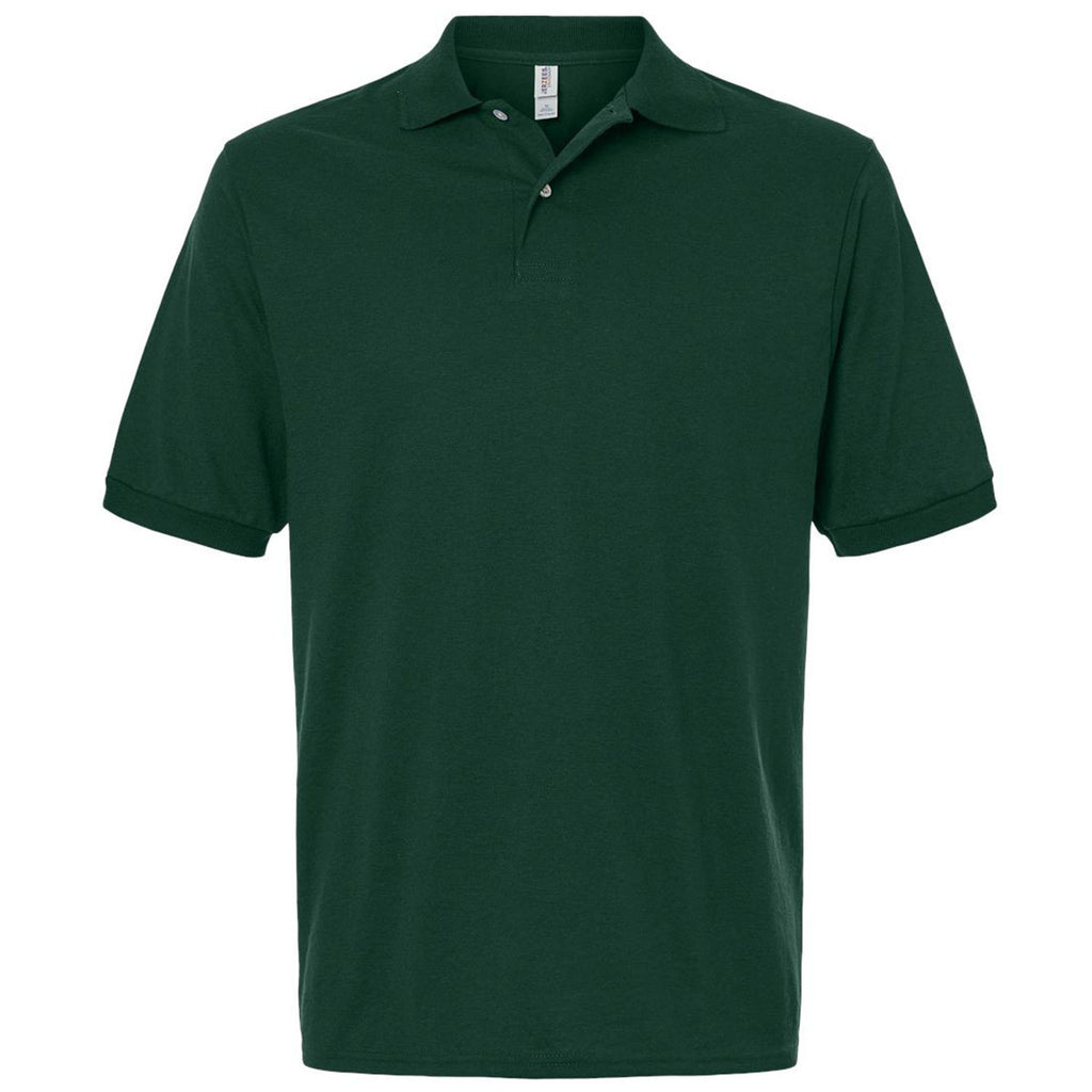 Choose embroidery for the Jerzees Men's Forest Green Dri-Power Polo made of sustainably sourced cotton. This classic polo is comfortable for all-day wear weather at work, hitting the driving range, or going out to drinks with friends at the club. Your custom design will pop on the preshrunk fabric that is created for long-lasting wear.Corresponding Women's Style: Jerzees Women's Forest Green Dri-Power Polo