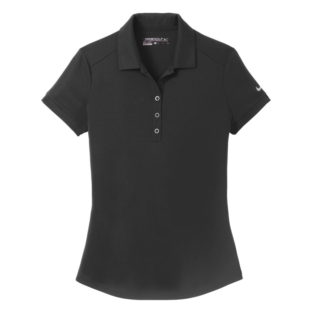 With a five button placket, tailored fit, and ridiculously smooth double pique fabric, the Nike Women's Black Dri-FIT Players Modern Fit Polo delivers in all respects. Get the female members of your team outfitted in the corporate polo all other corporate polos strive to be. With Nike's Swoosh on the sleeve, prime company logo real estate exists on the left chest, alongside a self-fabric collar and open hem sleeves. Add Nike's beloved Dri-FIT moisture management technology to the picture, and we don't really know what else to tell you about this polo other than: you won't find a better option out there.