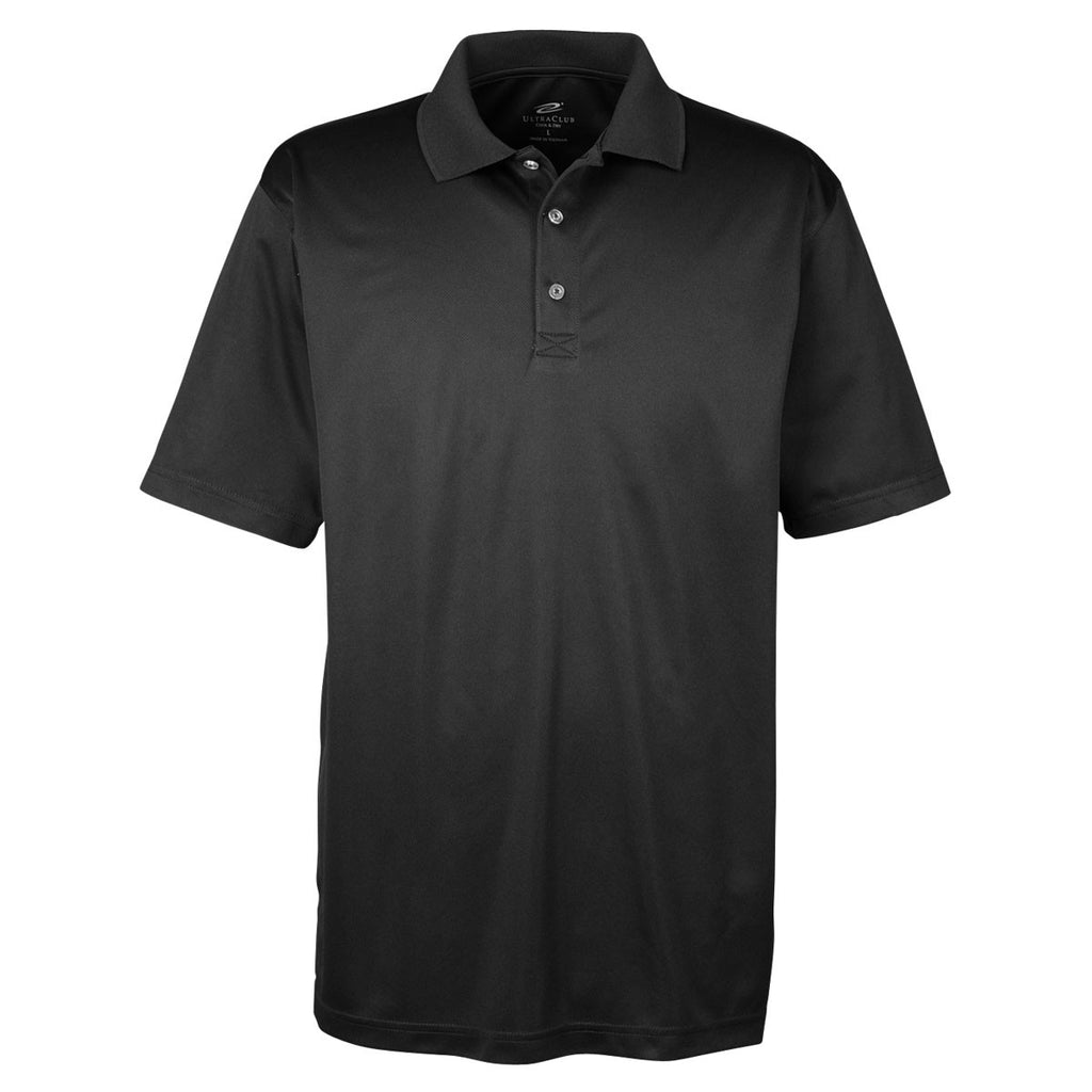 Hemmed sleeves and the drop tail separate the UltraClub Men's Black Cool & Dry Sport Polo from the polo pretenders. The chic design elements make the sport polo perfect for entertaining friends, as well as wearing out for a night on the town. Enjoy a relaxed fit that keeps you feeling great all night long. The knit collar and three-button placket complete the design elements for the elegant polo. Rugged 100% polyester mesh circulates air to keep the upper body dry. Moisture wicking technology quickly absorbs and removes sweat to cool the skin. Attach your corporate logo to gain more exposure for your company in the community.Corresponding Women's Style: UltraClub Women's Black Cool & Dry Sport Polo