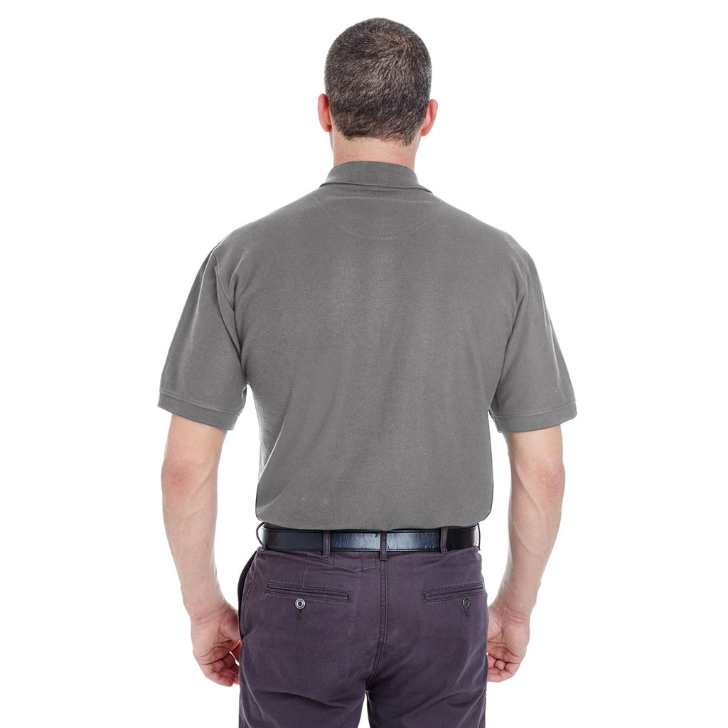 We have a secret we want to share. The UltraClub Men's Graphite Whisper Pique Polo represents the ideal corporate apparel to bring along on business trips. Easy to care for cotton and polyester pique offer the potent one-two punch of high fashion and long lasting durability. The elegant polo features contoured flat-knit collar and cuffs to create a refined look that potential customers notice. Turn the glances at the polo into a powerful marketing tool by adding a custom logo to the large imprint area. Single-needle top stitching at the neck, sleeves, and shoulders reduces the number of stitch marks that diminish the quality of other styles of polos.Corresponding Women's Style: UltraClub Women's Graphite Whisper Pique Polo