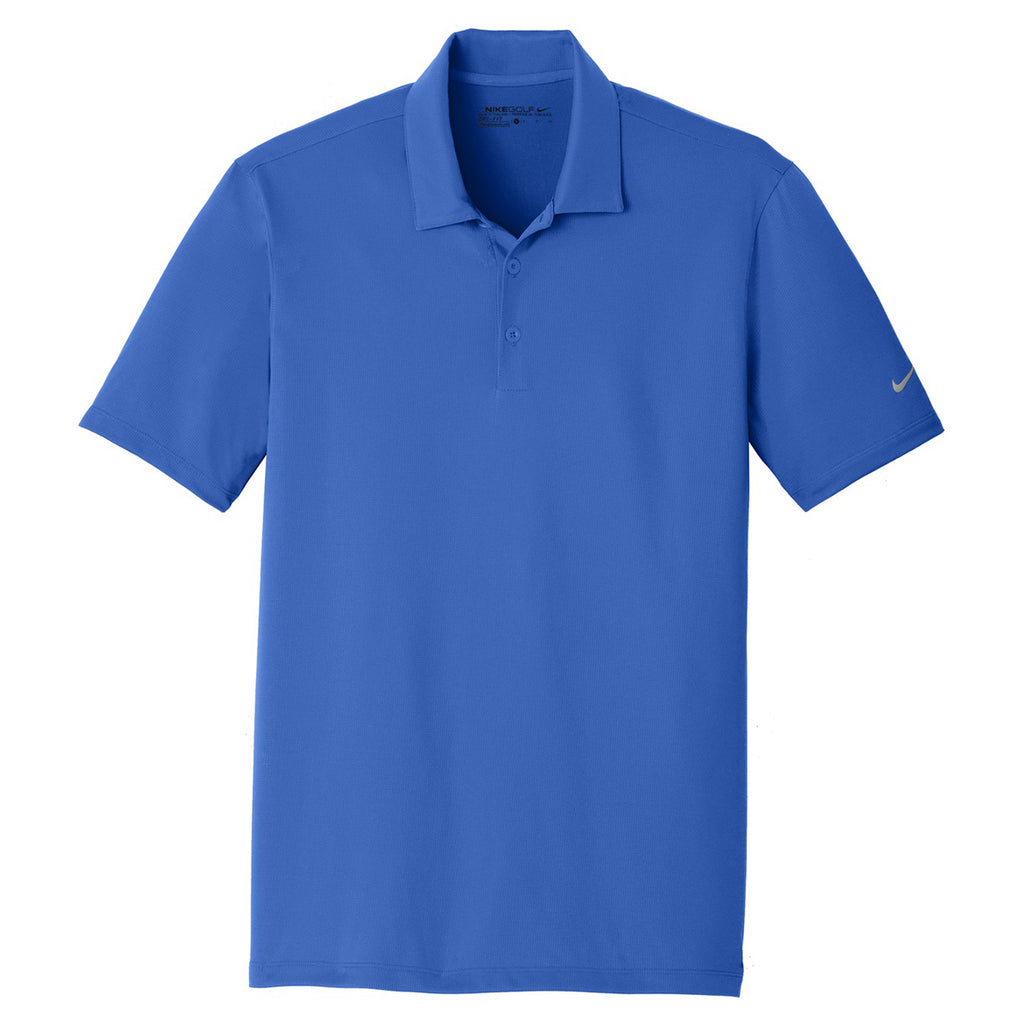 Before the next corporate golf tournament, order the logoed Nike Men's Game Royal Dri-Fit Legacy Polo to make a fashionable statement that professional peers will notice. Make the attention work for your company by attaching your corporate logo on the large imprint area. Proprietary Dri-FIT technology wicks discomfort away all-day long. The subtle, grid-like texture complements the visually appealing open hem sleeves, self-fabric collar, and dyed-to-match buttons. Wear the versatile polo on the links and afterwards during the awards show. The classic Nike swoosh logo on one side of the chest complements the stylish corporate logo you attached on the other side.