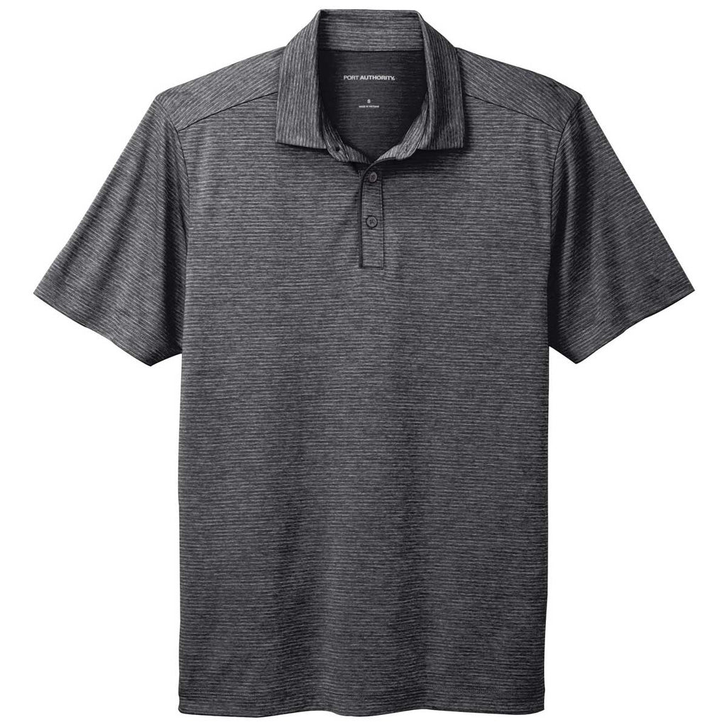 Add a custom logo to the Port Authority Men's Deep Black Shadow Stripe Polo for a statement making shirt that will turn heads. The simple stripe design is subtle to not distract from your logo and the snag-resistant finish makes sure you always look your best each day. Create a company logo or design to use these for employee apparel with the 100% polyester jersey that is also moisture wicking. The 3-button placket with piping detail adds that bit of extra to the polo that can be worn in the corporate world or on the putting green.Corresponding Women's Style: Port Authority Women's Deep Black Shadow Stripe Polo