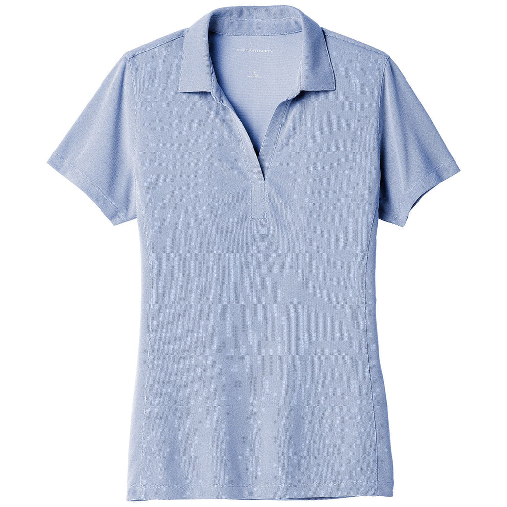 Take corporate apparel to the next level by giving away the company logoed Port Authority Women's True Royal Poly Oxford Pique Polo for the women on your successful team. Proprietary PosiCharge technology prevents colors from bleeding into each other during vigorous wash cycles. Moisture wicking technology applied to the 100% polyester oxford pique clothing quickly dries the skin to ensure all day comfort. Rugged polyester resists rips and tears to keep the polo in your professional apparel rotation. Attach a custom logo on the large embroidery area to broaden the reach of your brand at business seminars and conferences.Corresponding Men's Style: Port Authority Men's True Royal Poly Oxford Pique Polo