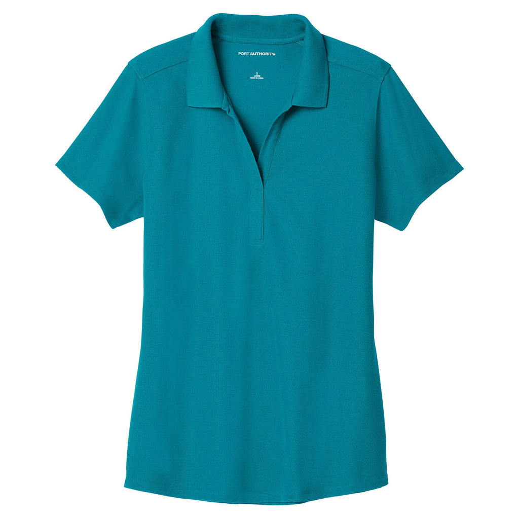 Select the ultimate employee uniform for the women members of your dedicated team by ordering the custom logoed Port Authority Women's Teal EZPerformance Pique Polo. Highly durable 100% spun polyester pique fabric resists the types of rips and tears that diminish the quality of other styles of polos. Wear the multi-purpose polo to work and keep it on after the workday ends when you kick back at your favorite restaurant. The sleek Y-neck placket and open hem sleeves put the polo on the highest fashion pedestal. Add a custom logo on the embroidery area to reach more potential customers at industry trade shows.Corresponding Men's Style: Port Authority Men's Teal EZPerformance Pique Polo