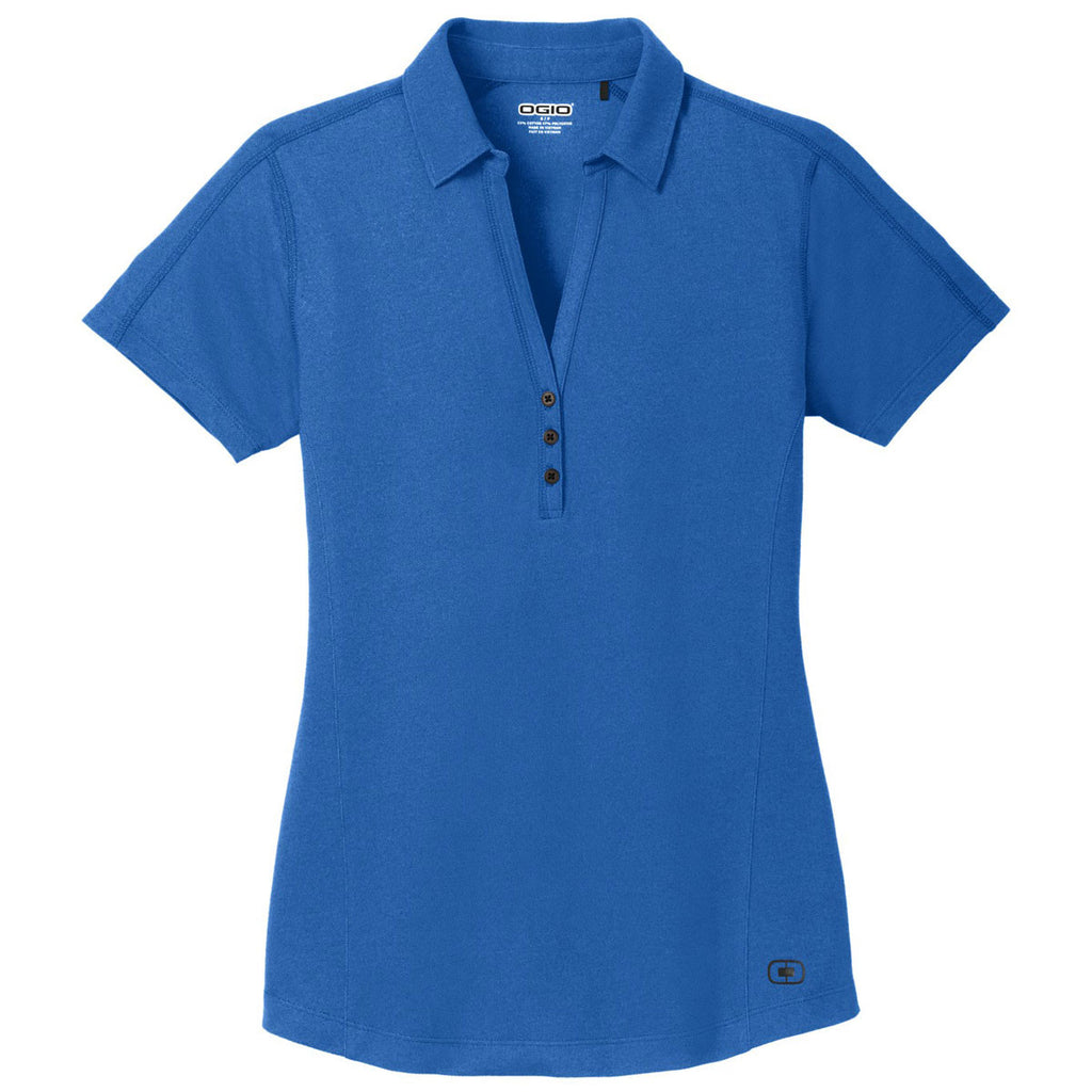 Sleek, stylish, and sexy-if ever a shirt inhabited the "three S's" that make women's polos so attractive, the OGIO Women's Electric Blue Onyx Polo would be that shirt. Of course, it's not really complete until you add your custom logo onto the front with our embroidery process. That way you can use these polo shirts as corporate giveaways, prizes, and even uniforms. With a tag-free design and enough comfort to last you all day, there are very few who would object to that. Our other favorite features? The same-color details, the curved hem, and modified raglan sleeves for a unique fit. A cotton-rich polo that pushes the envelope with moisture-wicking performance and modern details.